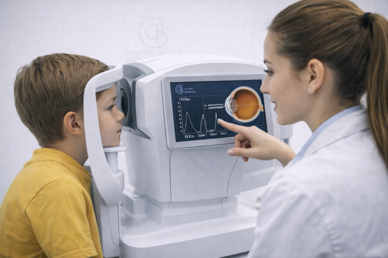 Medimos parámetros internos del ojo, especialmente importantes en el seguimiento de la miopía y en el control del crecimiento ocular, tanto en niños como en adultos.